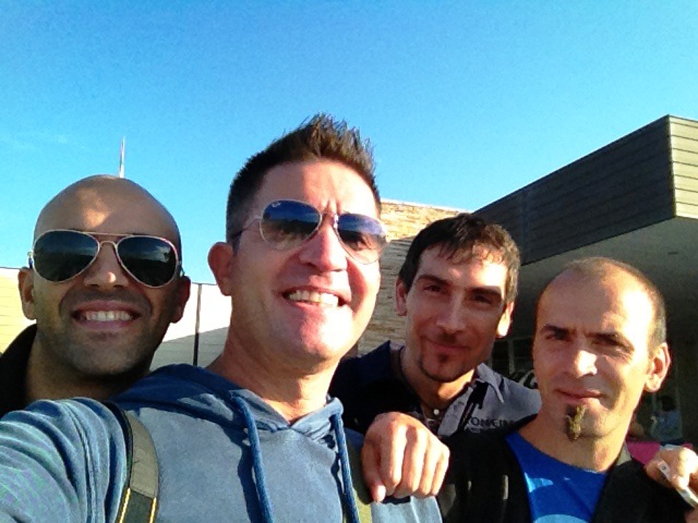 Appena arrivati in fiera: da sinistra, Fabio (dotto), Salvo (Tatore), Emanuele (Emanuele) Marcel (titi)