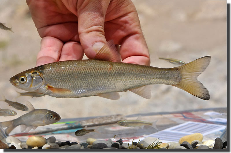 Anche la raccolta di alcuni ciprinidi con il colore del corpo giallastro e pinne gialle, un grosso esemplare di Chondrostoma cryi (foto in basso).