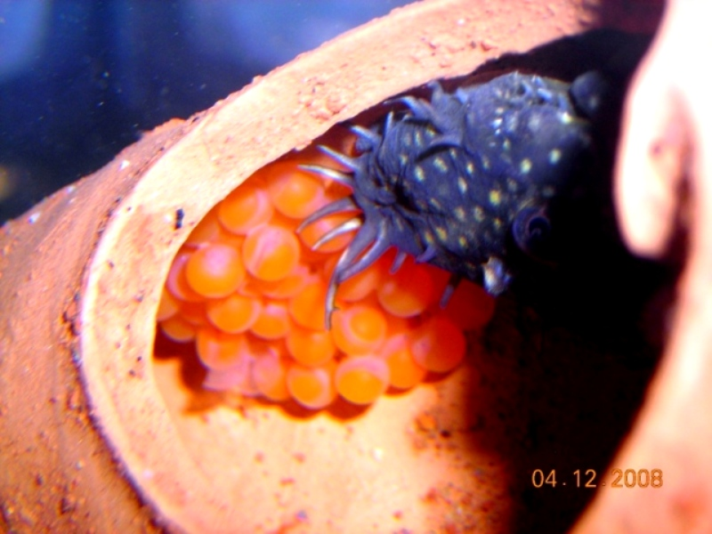 Un bel giorno dopo aver fatto un sostanzioso cambio con acqua abbastanza fredda ecco cosa abbiamo trovato ......l'accoppiamento e’ abbastanza rude , il maschio porta la femmina nella sua tana, scoperta poco prima , e spinge la femmina alla deposizione, una volta finito il maschio feconda le uova e scaccia via la femmina per  accudire da solo difendendole da inquilini indesiderati. Uscira’ solo per brevi escursioni alla ricerca di cibo. .