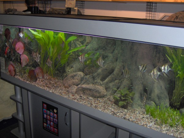 Una sequenza di foto che riprendono uno dei tanti acquari allestiti: un biotopo amazzonico, classico e immancabile