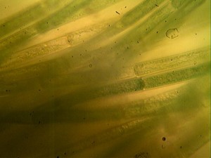 Qui si cominciano a notare le cellule una ad una del filo di alga, con i cloroplasti dal riconoscibilissimo colore verde
